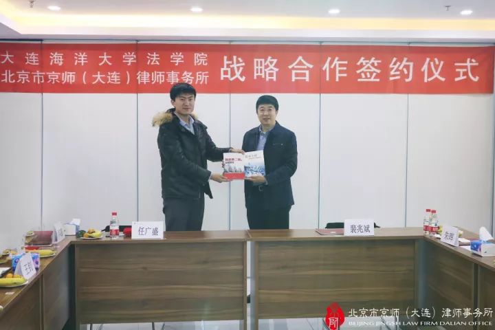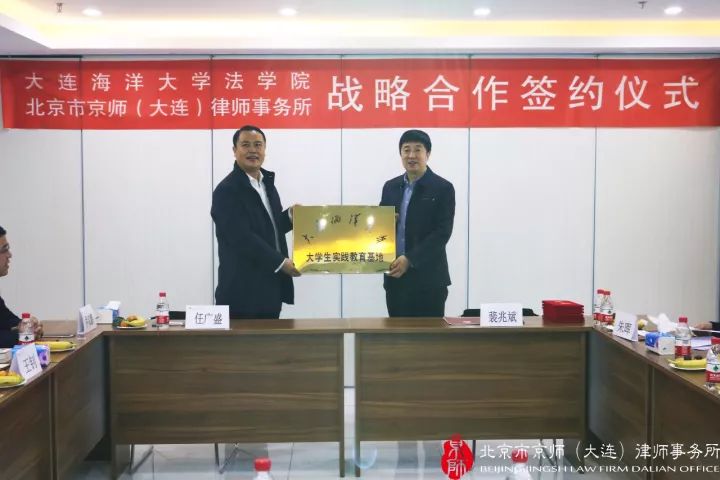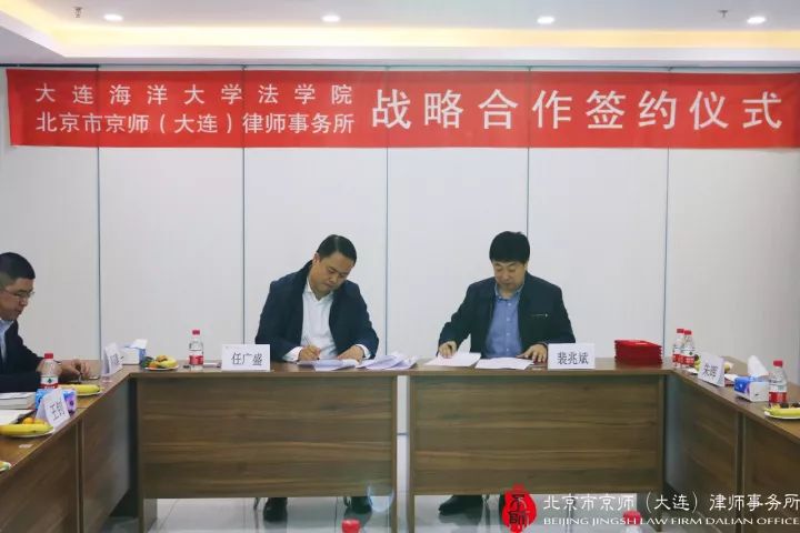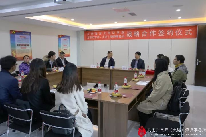 2017年11月14日,大连海洋大学法学院与北京市京师(大连)律师事务所战略合作签约仪式,在京师大连分所多功能会议厅成功举行!