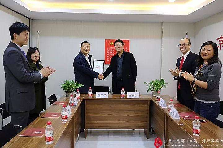 大连市律师协会理事、高新区律师代表处主任、辽宁世勋律师事务所主任郝新林律师,北京市京师(大连)律师事务所创始合伙人、管委会主任任广盛律师、美国天普大学法学院亚洲项目主任,清华-天普美国法学硕士项目的负责人桑国亚教授,京师大连分所主任助理王钊等共同出席此次授牌仪式!