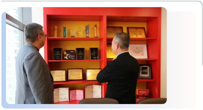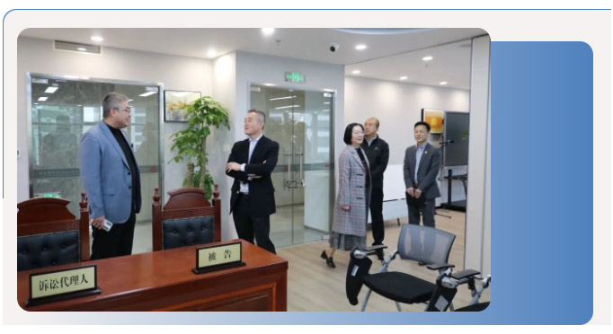 京师大连律所毛震宇主任等陪同刘毅会长一行参观了律所的律师办公区、行政服务大厅、会议室、模拟法庭、党建活动室等基础硬件设施,并就律所的成立之路、现今规模、以及创新的客户回访模式进行了详细介绍。