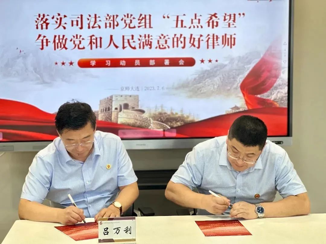 7月6日,京师大连律师事务所党支部积极响应号召,组织党员律师召开落实司法部党组“五点希望”争做党和人民满意的好律师学习动员部署会。